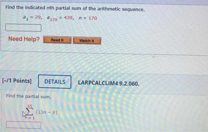 Find The Indicated Nth Partial Sum Of The Arithmetic Sequence