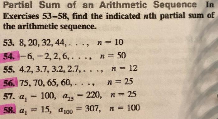Solved N 10 Partial Sum Of An Arithmetic Sequence In Chegg Com