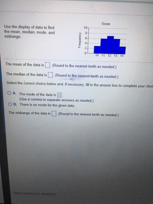 Solved Score 10 Use The Display Of Data To Find The Mean Chegg Com